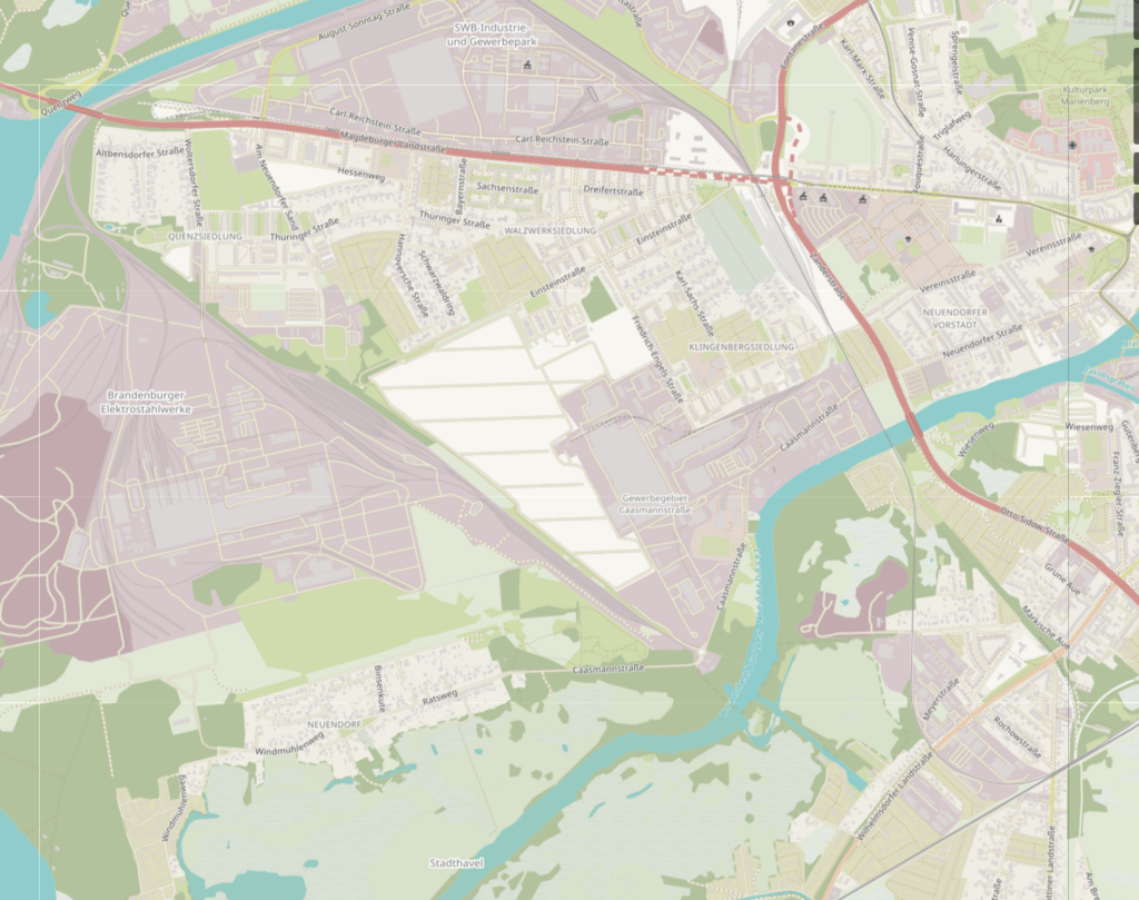 Da muss natürlich geschaut werden, dass was man macht, auch gewisse Kostennutzeneffizienz hat. Also Brücke über oder Tunnel unter Brandenburger Niederhavel, nur für den Shuttleservice, das würde kaum Sinn ergeben. Aber wenn man dort östlich von dem Stahlwerk z.B. Großwerkstatt für Lokomotiven machen würde, und/oder Berufsfeuerwehr hätte dort gerne eigenes Gleis und Halle, wo teils z.B. zentrale Werkstatt für Kraftfahrzeuge (wie RTWs usw.) betreiben möchte – dann sieht das schon anders aus.